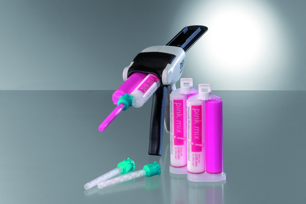 General-purpose impression silicone, medium initial consistency for intensified sealing. Thixotropic, does not drip from the ear. Fast set, easy to remove, with visual level control. Excellent cost/performance ratio. High detail reproduction and tear resistance, well retaining its shape and volume. A-silicone, biocompatible, medium viscosity, time in the ear: 2:30 min., final hardness: approx. 38 Shore A, Medical device Class IIa, colour: pink