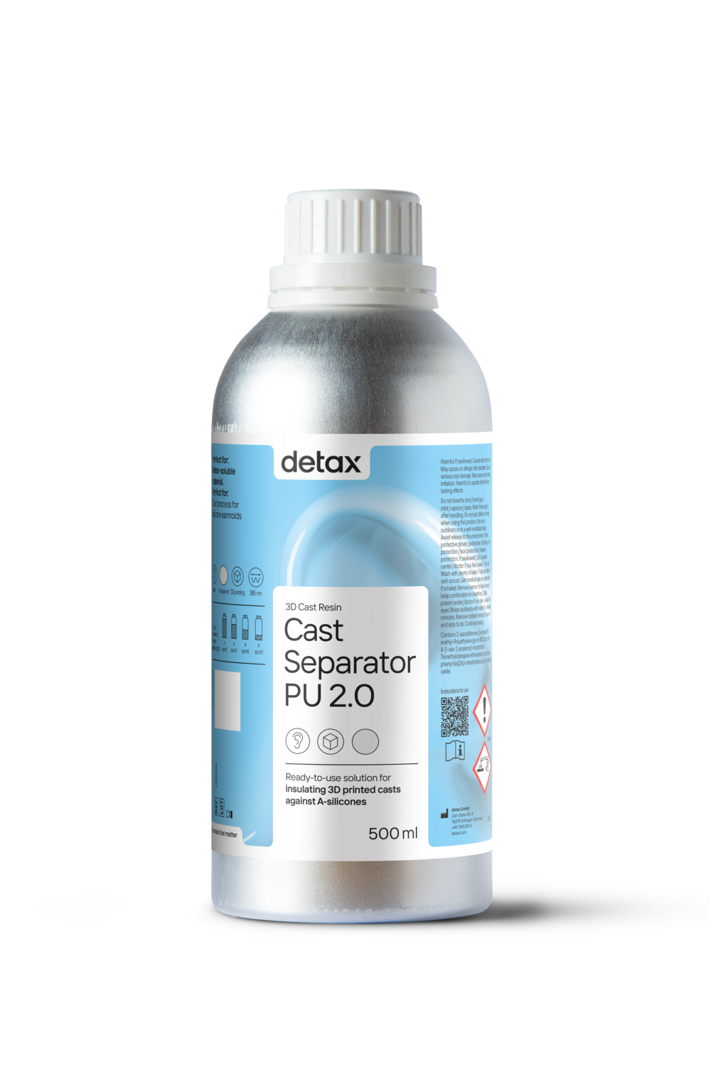 Gebrauchsfertiges Trennmittel zum Isolieren von 3D-gedruckten Gussformen (auf Methacrylatbasis, z. B. dx cast 2.0) gegen Polyurethan (z. B. THERMOtec). Verhindert das Anhaften des PU-Rohlings an der Gussform und ermöglicht eine leichte Entnahme.